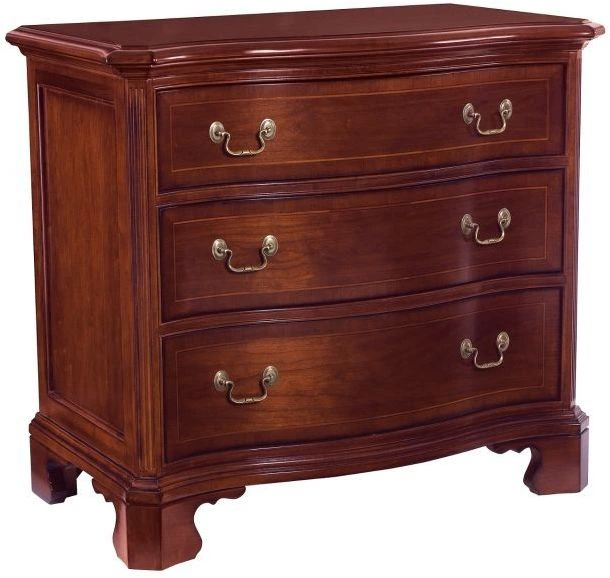 Bachelor chest is the perfect bedside table with the larger size with three drawers to allow for extra storage space. Shaped fronts with bracket feet, reeded pilasters and beautiful traditional hardware complete this piece.Read More