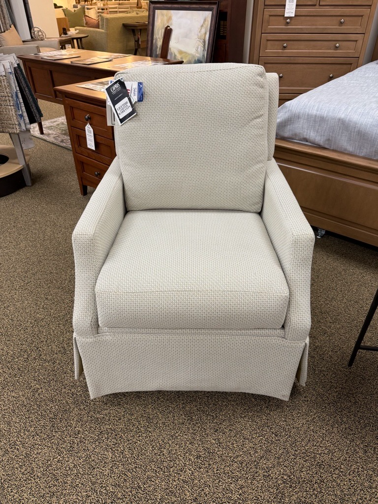 Capris Swivel Chair in Kiddo Chambray with a Cloud Lux cushion.Read More