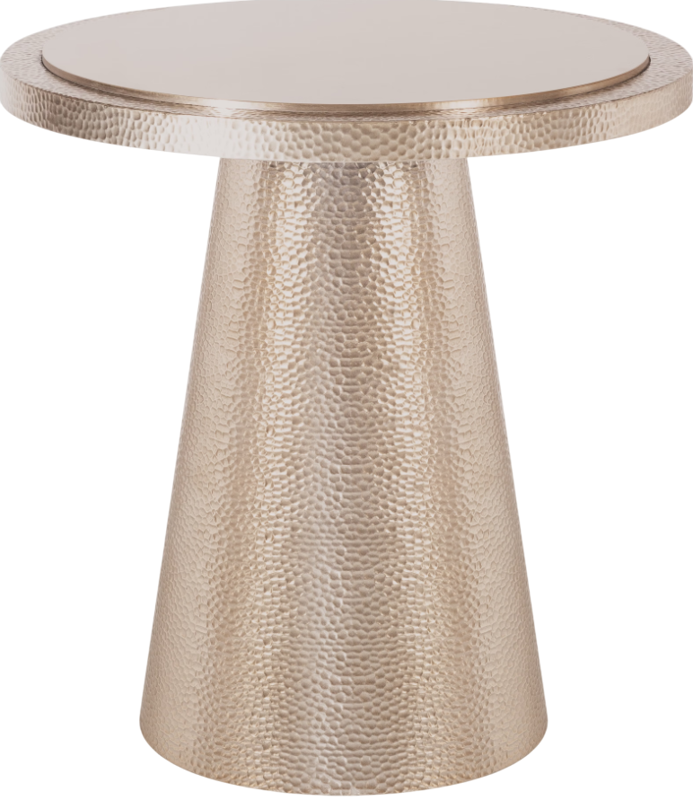 Add a touch of modern elegance to your living room with the Archives spot table. This round accent table features a unique metal-cladding with a hammered texture, finished in a luxurious satin brass. The refined craftsmanship and rich materials, such as birch veneers and aluminum, offer a timeless appeal.Read More