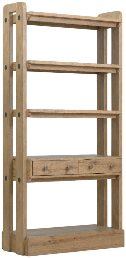 Inspired by industrial design, the Kalamazoo bookcase features an aged oak veneer finish that evokes the feel of vintage workshops. This bookcase offers three shelves for open storage, two center drawers, and a hidden drawer in the base for added functionality.Read More