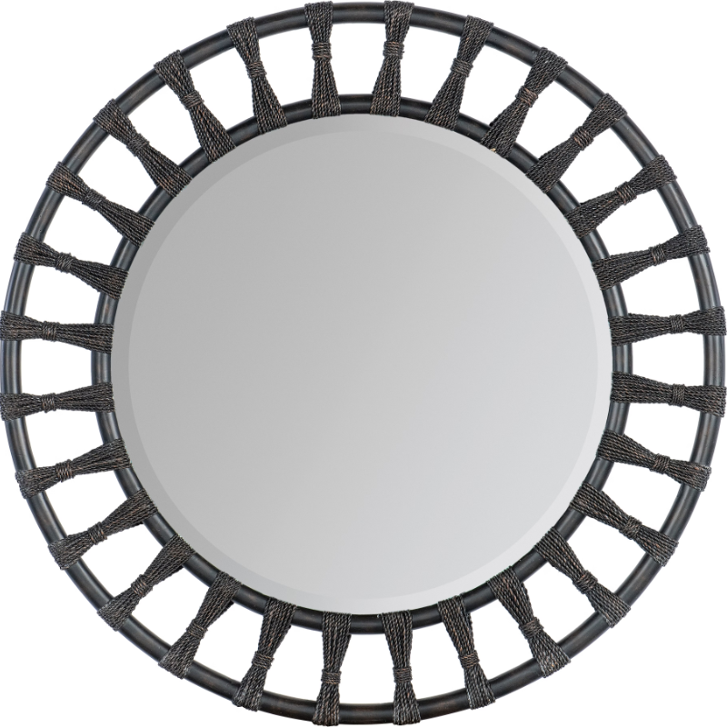 Inspired by tropical getaways and island locales, the Retreat Pole Rattan Accent Mirror features an inner and outer wood circle connected by rope accent ties. it is finished in black sand, transparent by design to showcase the unique grain patterns of the veneer.Read More