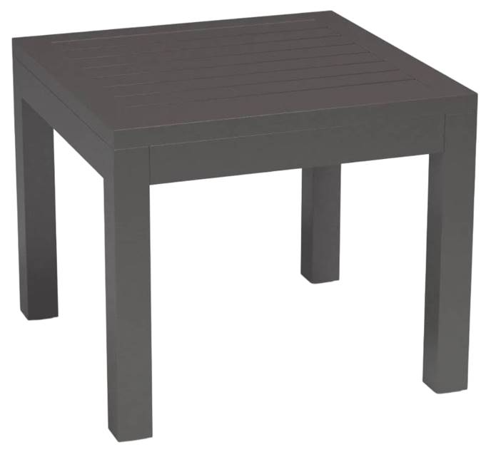 The Vegas Collection offers ease of outdoor dining and entertainment with its low maintenance aluminum frame. The Vegas End Table is crafted in a scratch resistant graphite finish, on a powder-coated aluminum frame and features a slatted table top.Read More