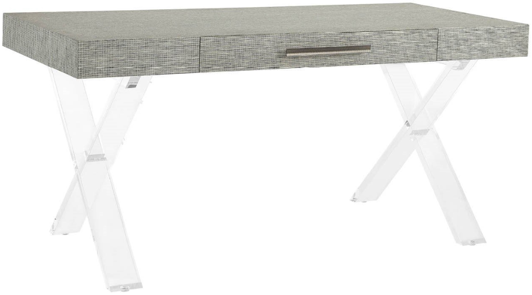 A whisper of coast and clarity: Seascape’s wallpaper-wrapped silhouette floats on crystalline acrylic legs, with a discreet pencil-tray drawer to keep the surface serene for ideas to flow. Aged Pewter hardware.Read More