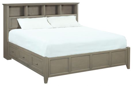 This bed features solid alder hardwood with a Fieldstone finish and English dovetail drawer construction.